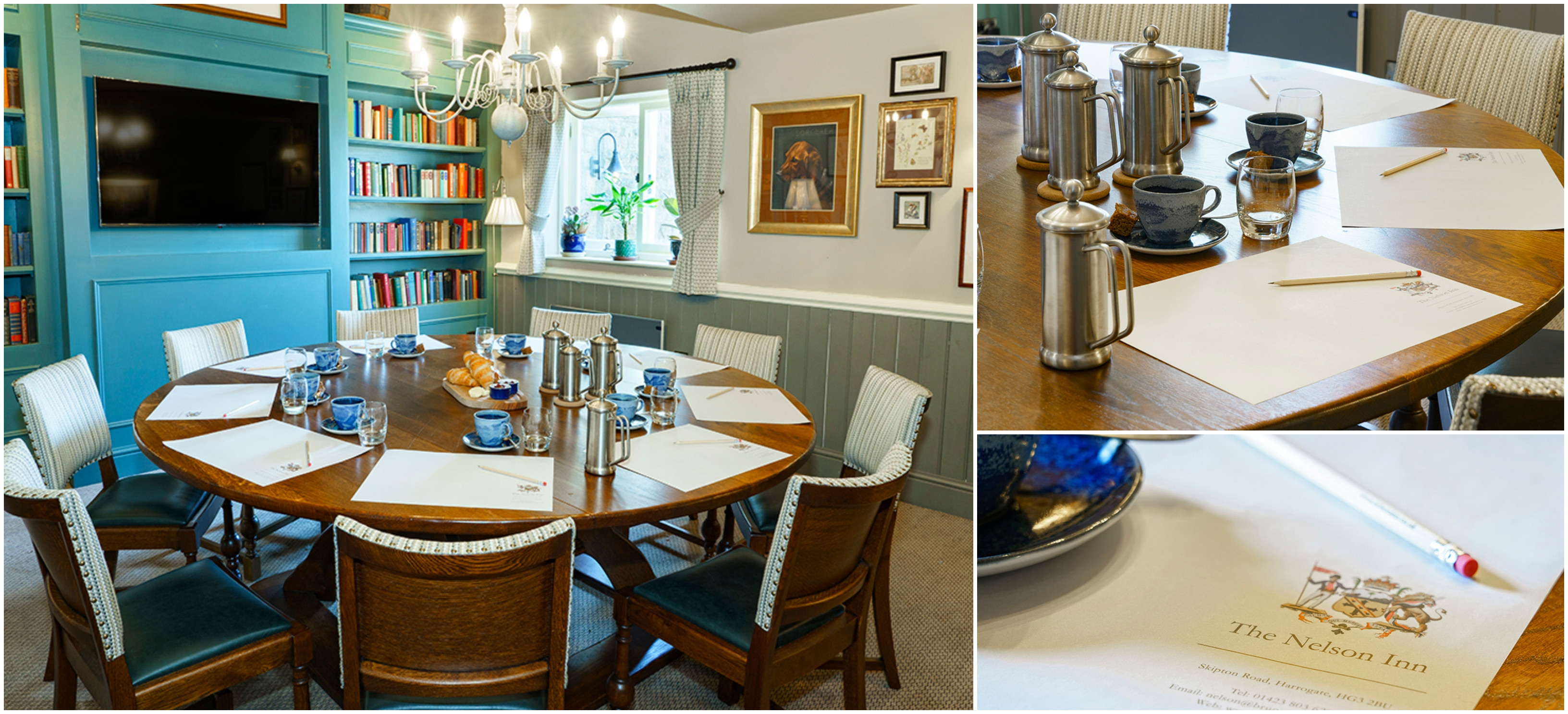 The library is also available to book for meetings with a screen for presentations, of course teas and coffees and the full daily menu available. If you would like to discuss your requirements please get in touch.
